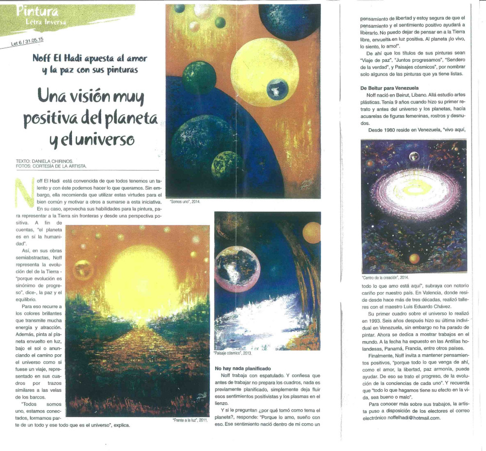 Para Noff el arte no es una pintura que adornan las paredes sino es un mensaje de amor y admiración a toda la creación.
