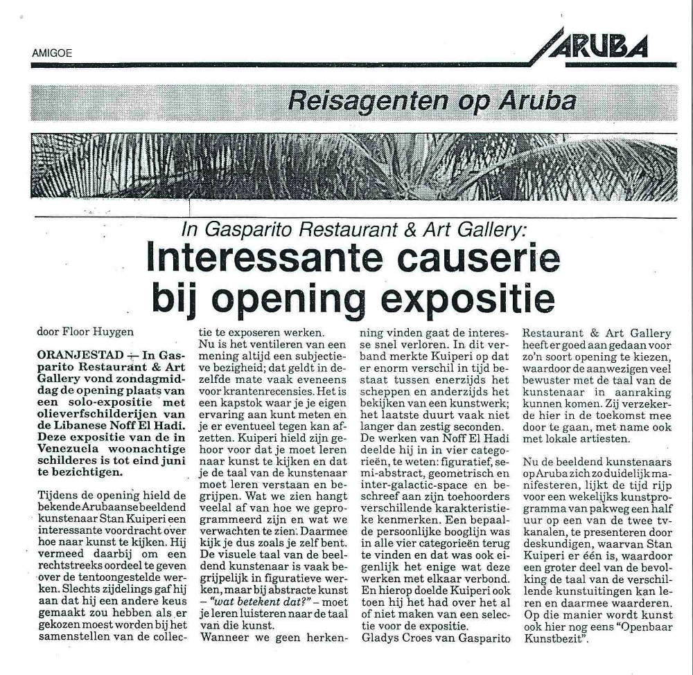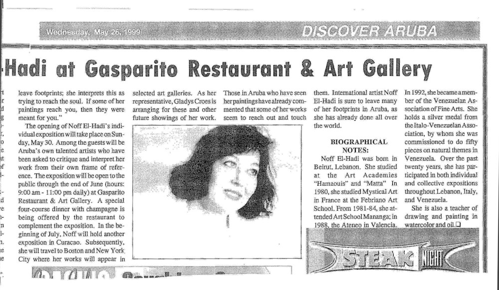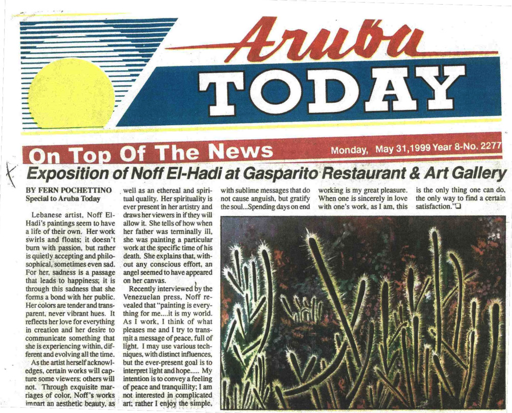 Her talent has been proven with 46 exhibitions in countries such as Lebanon, Italy, Venezuela, Aruba and Curaçao among others.